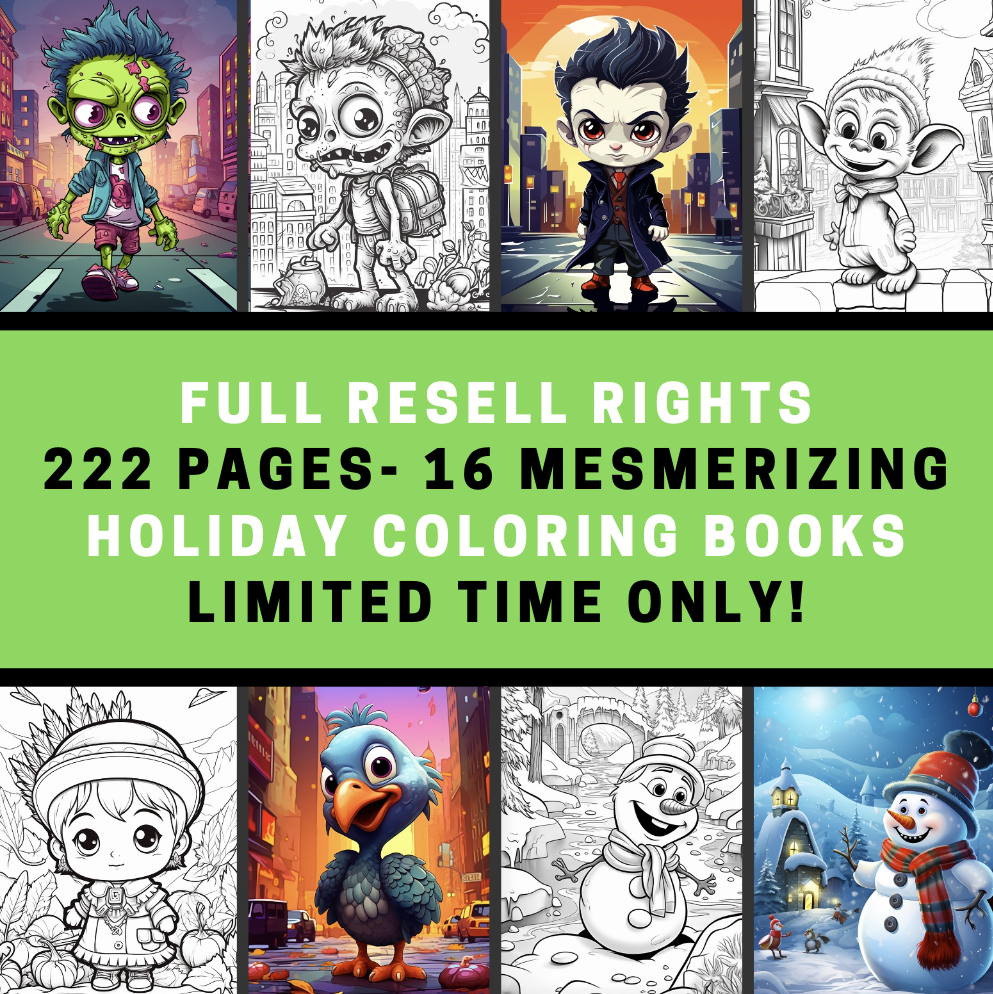MRR - 16 Mesmerizing Coloring Books, 222 Pages Full Master Resell Rights - Limited Time!