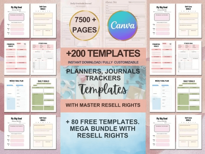This bundle includes 7500+ Pages PLR Planners, Journals, Trackers, and Printable are 100% editable in Canva.
