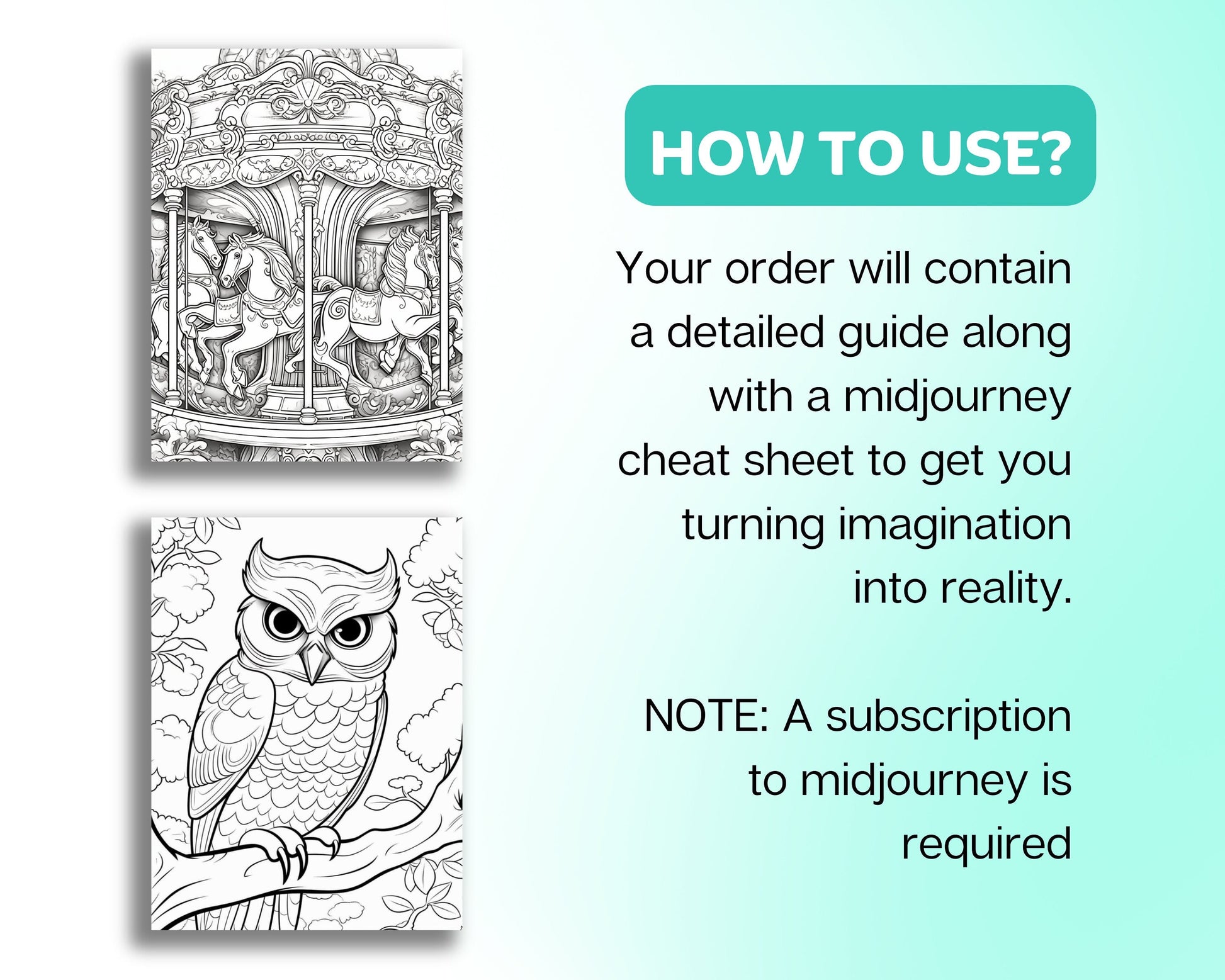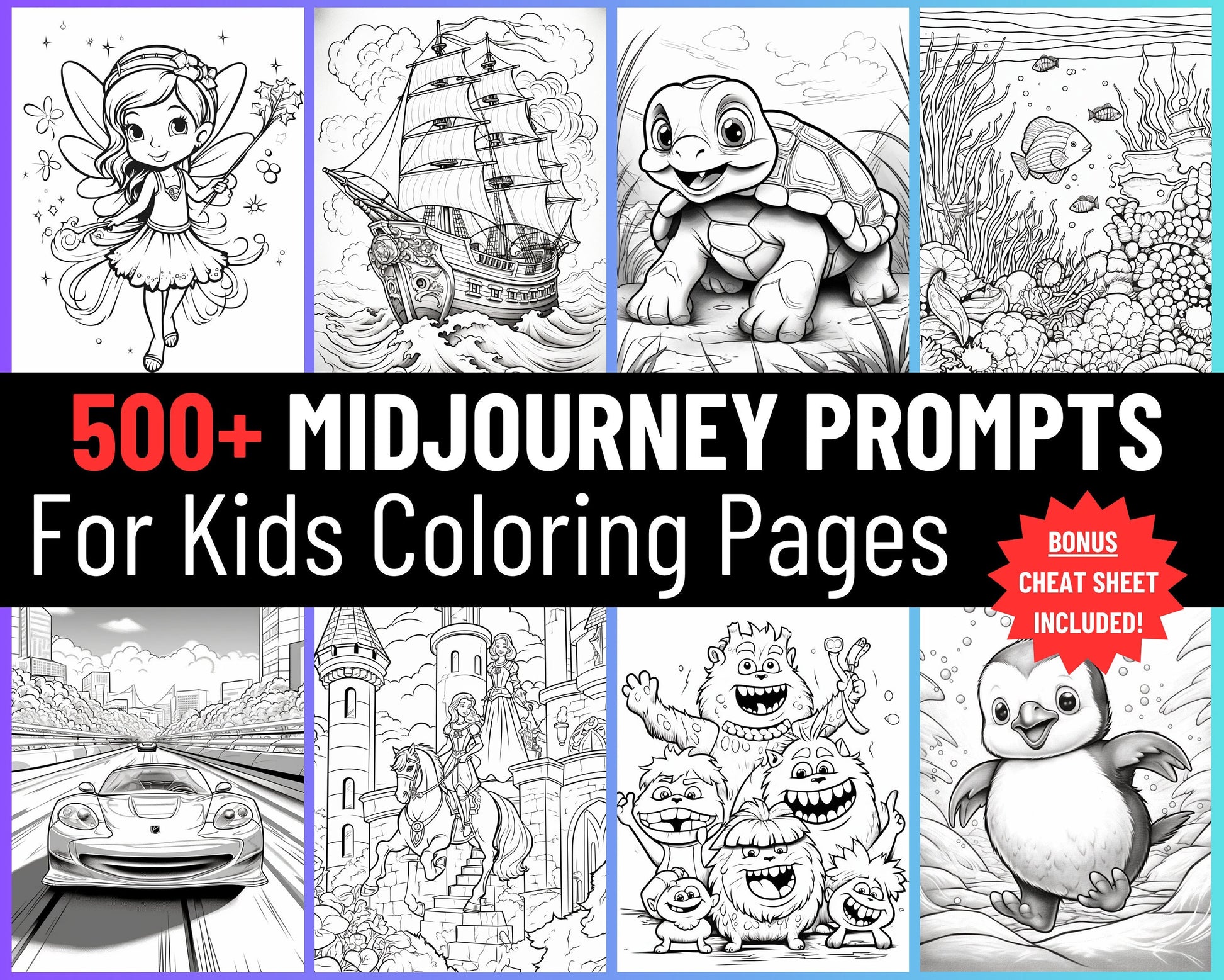 500 Midjourney Prompts AI For Kids Coloring Pages Book