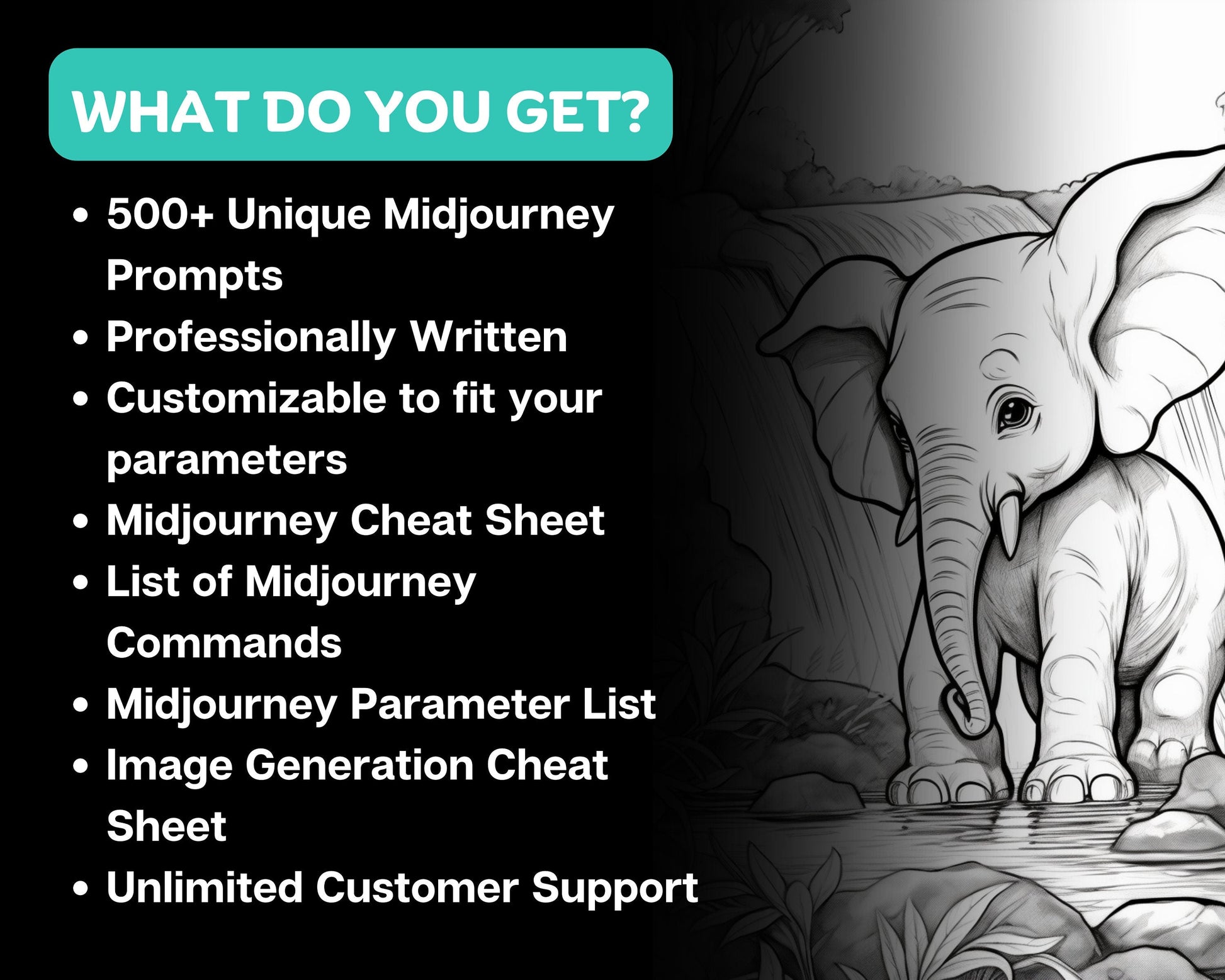 🔥 Get this 500+ Midjourney Prompts to help you create unimaginable AI art Kids Coloring Pages and Book designs so you can speed up your design and lead times.