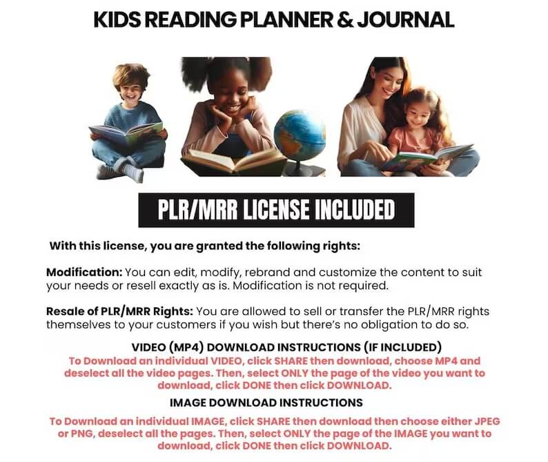 Kids Reading Planner, Journal & eBook with Resell Rights | Includes Reading Trackers for Kids