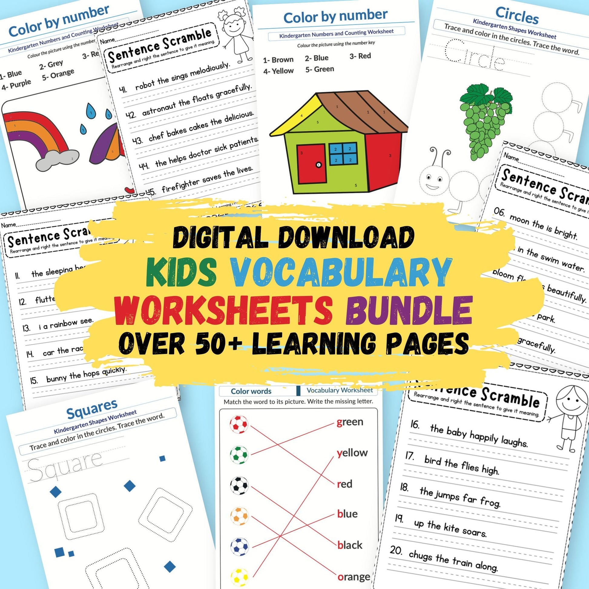 MRR Kids Vocabulary Learning Worksheets Bundle - Over 50+ Pages